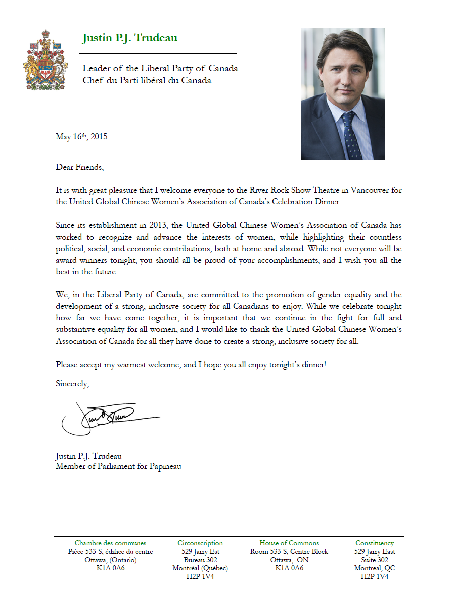 杜鲁多贺函-2015
